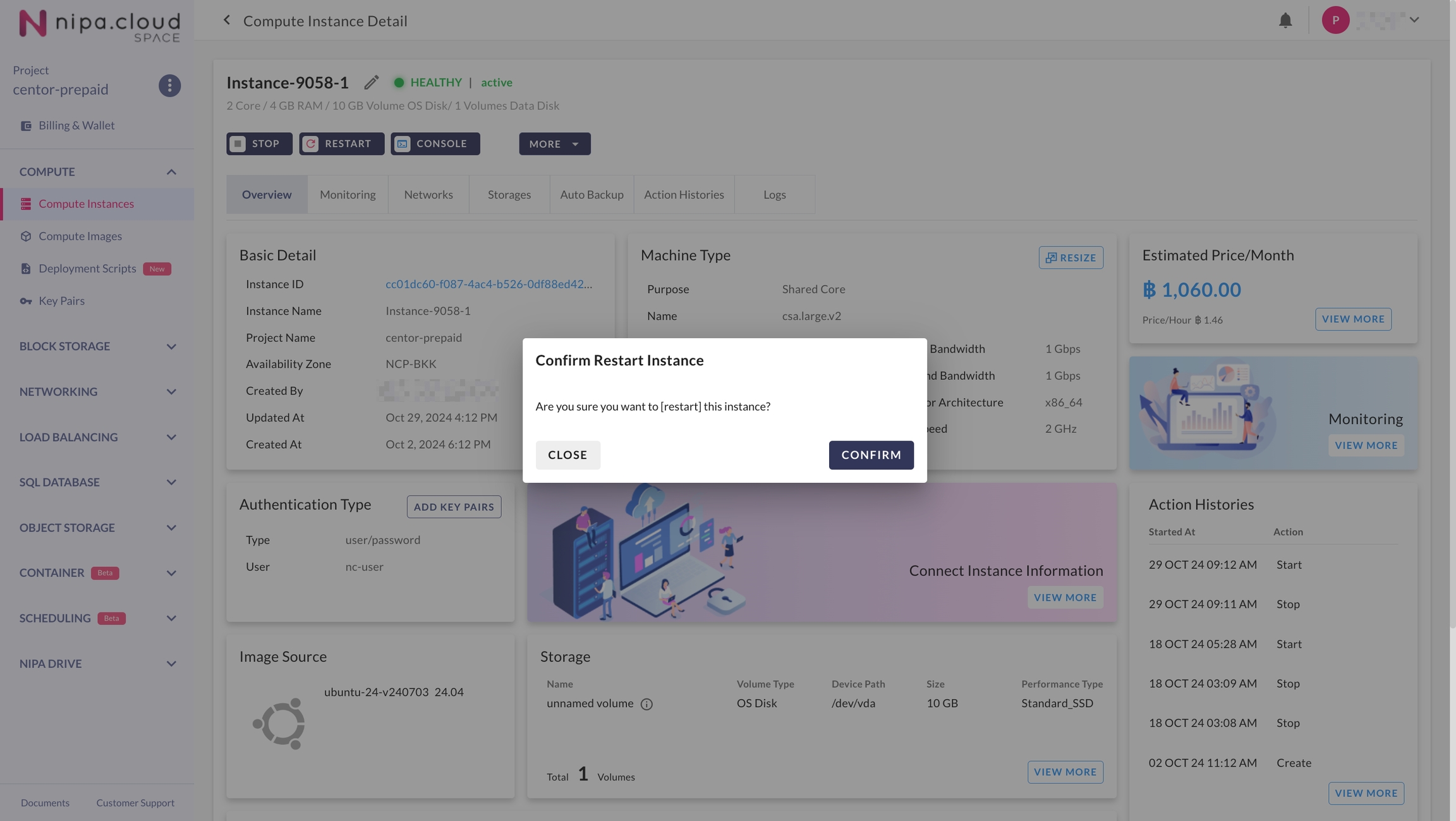The system will return you to the previous page. The process is complete once the instance's status returns to "active".