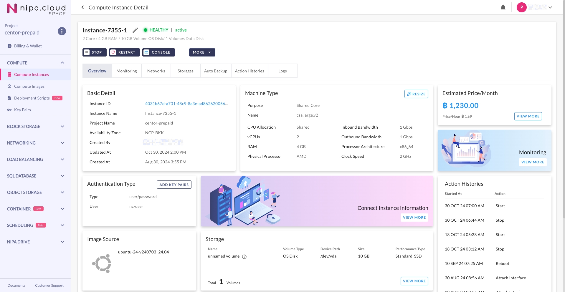 The system will return you to the previous page. The process is complete once the instance's status changes to "active".