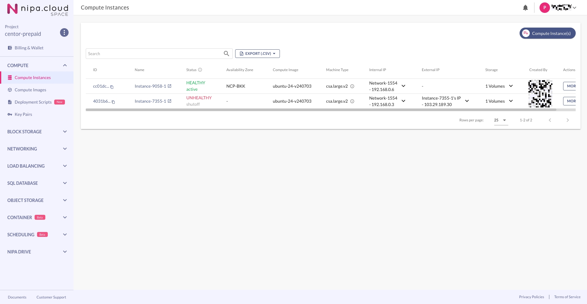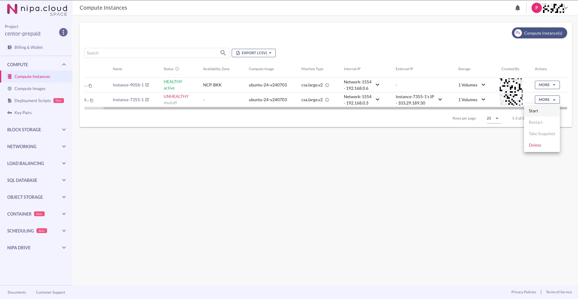 In the left-hand menu, click COMPUTE > Compute Instance to access the Compute Instance list.