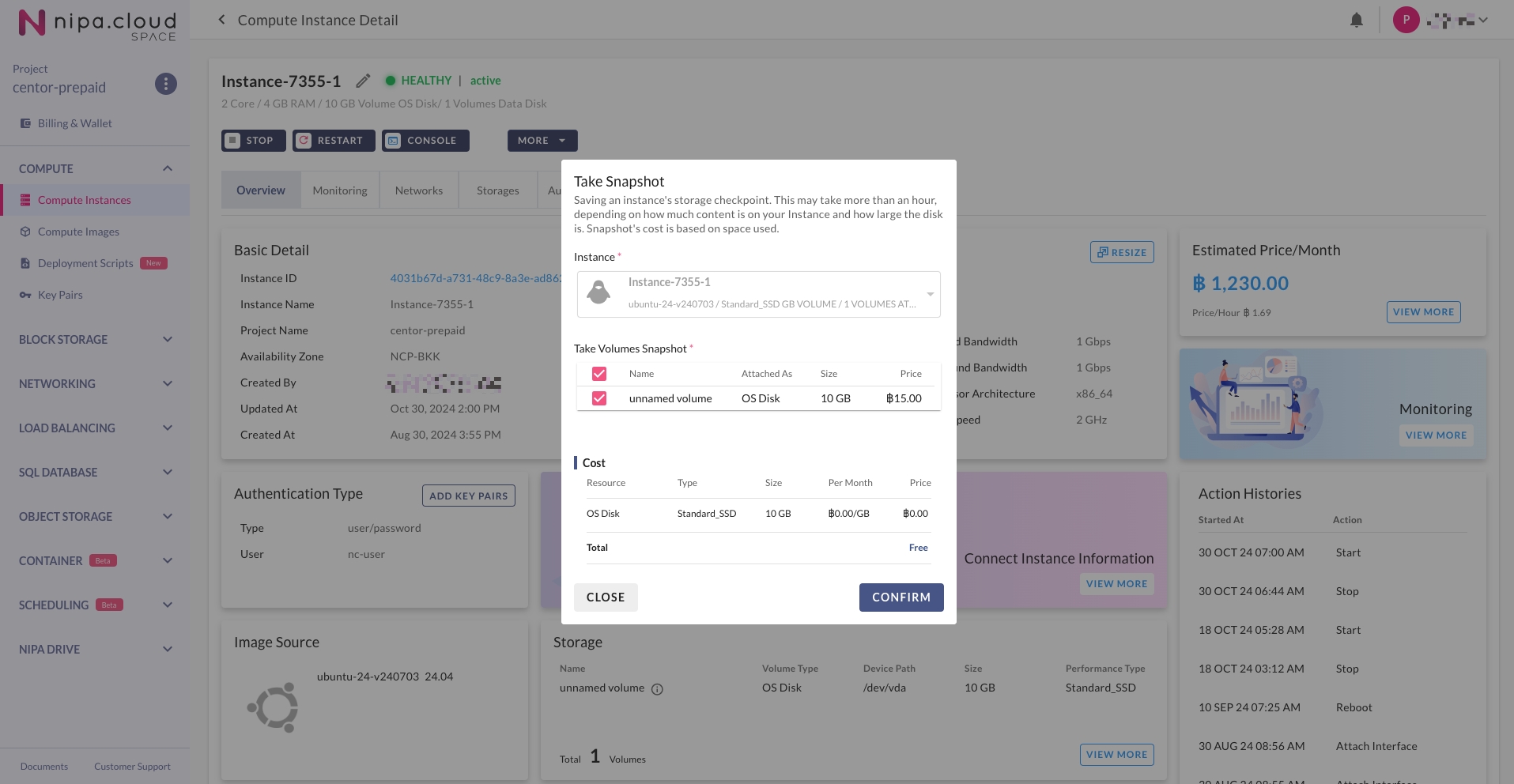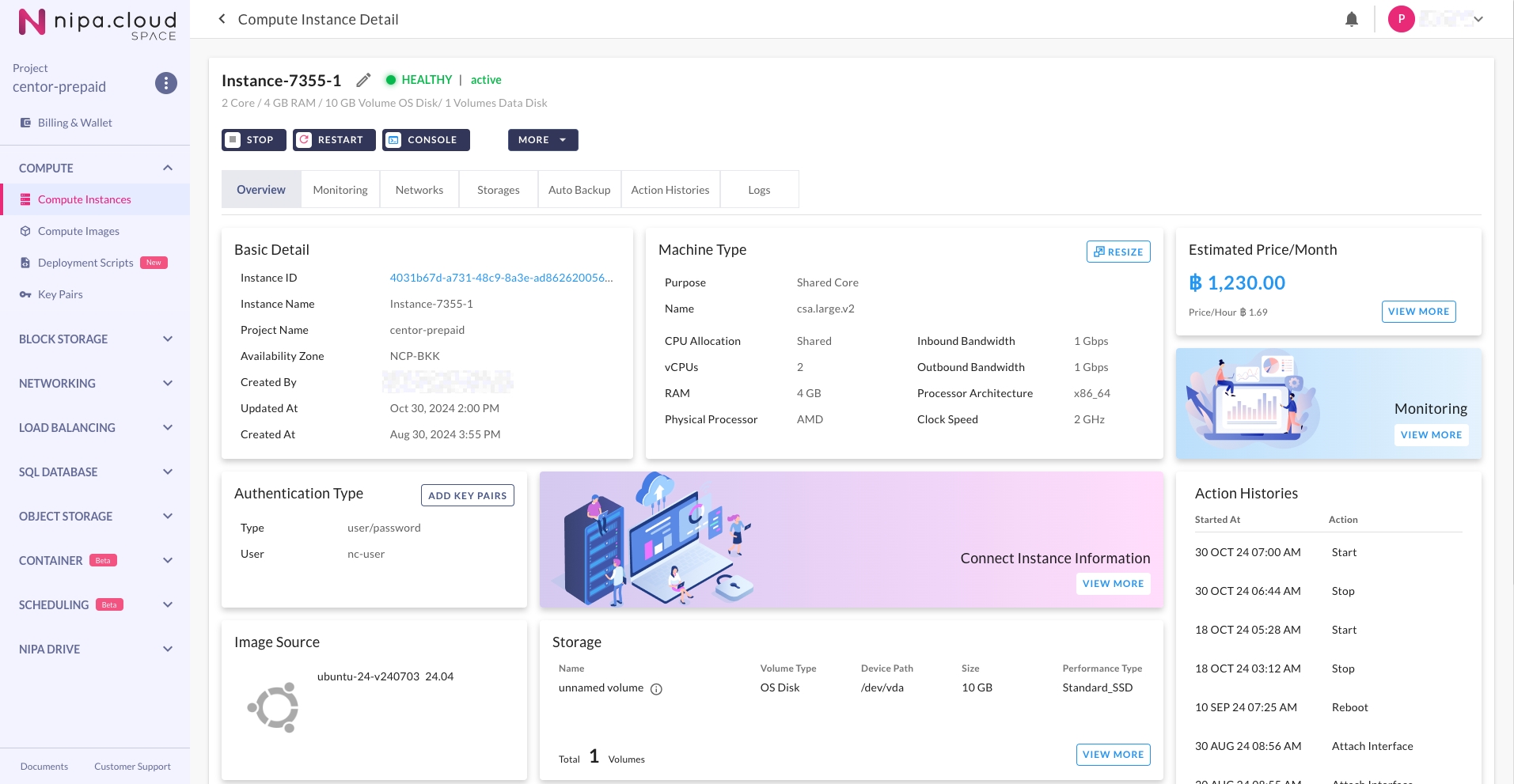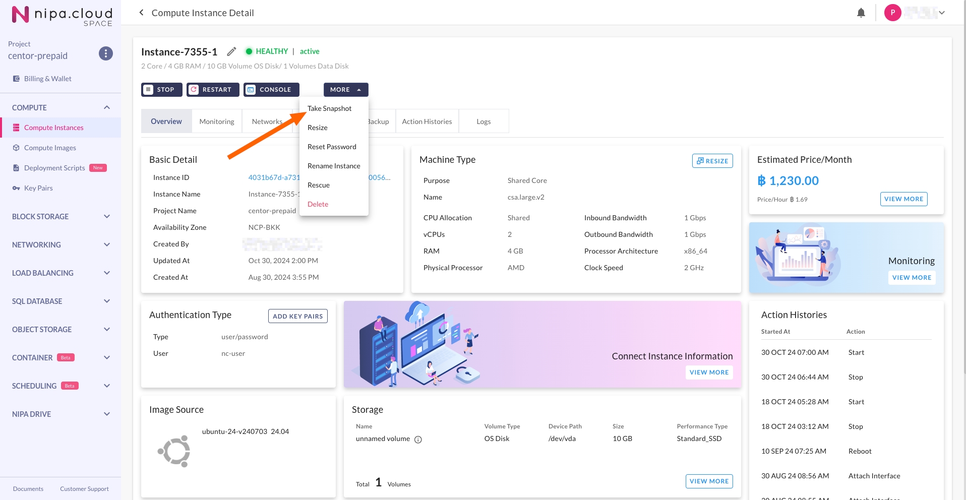 2. Go to the Compute Instance Detail Page