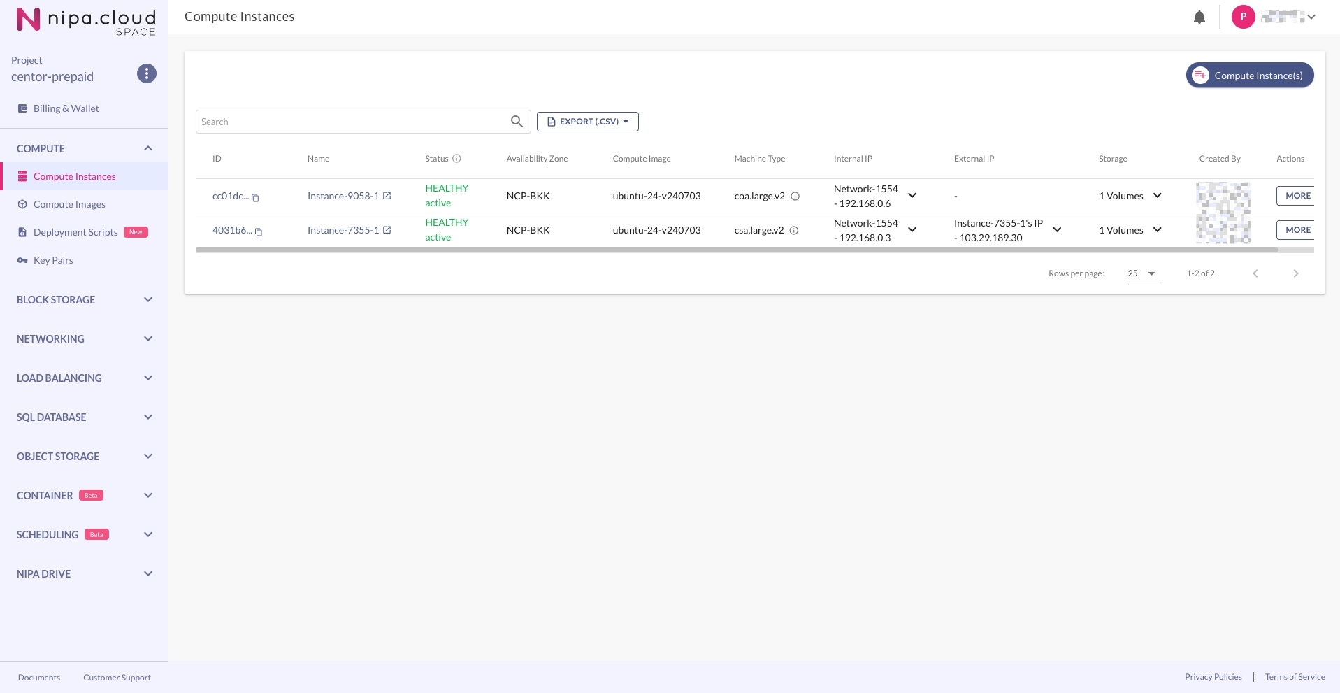 In the left-hand menu, click COMPUTE > Compute Instance to access the Compute Instance list.