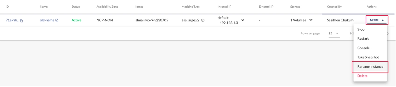 Click MORE > Rename Instance In the last column for the instance you want to rename, click the MORE button, then select the "Rename Instance" menu.