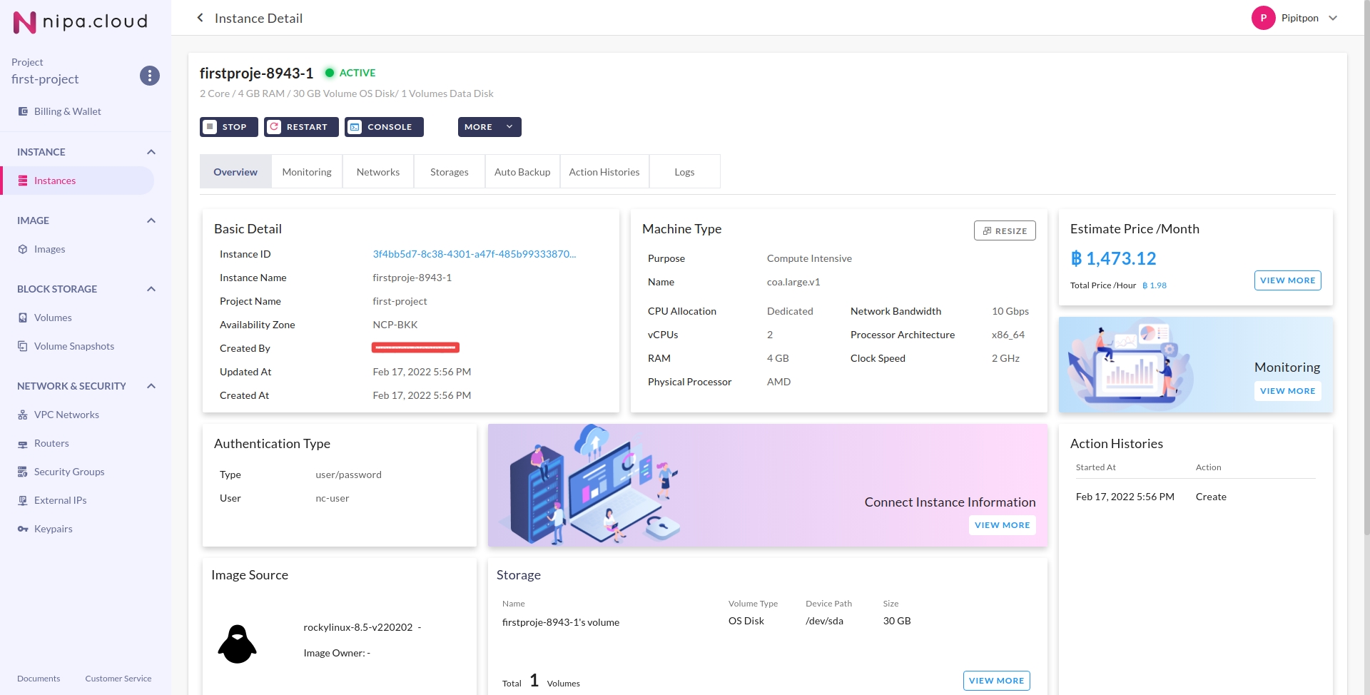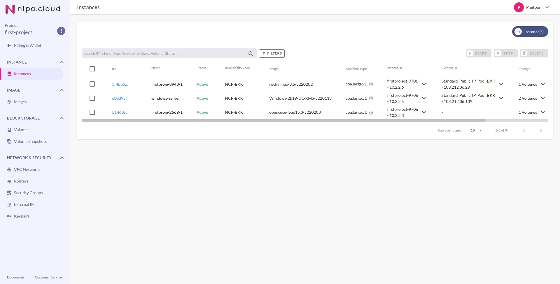 In the left-hand menu, click COMPUTE > Instances to go to the instance page.