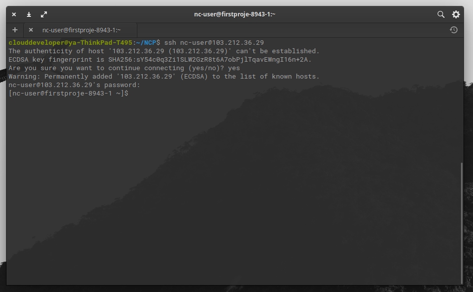 ssh nc-user@INSTANCE_EXTERNAL_IP
