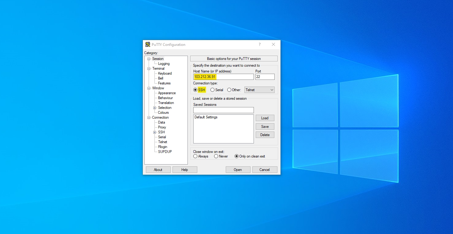 Connection Type: Select SSH.