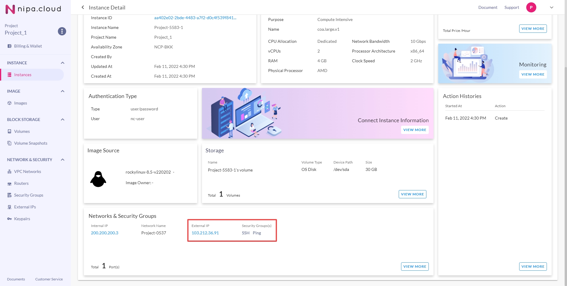 3. Go to the Compute Instance Detail Page