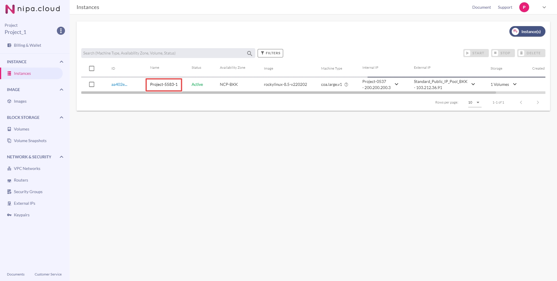 In the left-hand menu, click COMPUTE > Compute Instance to go to the Compute Instance page.